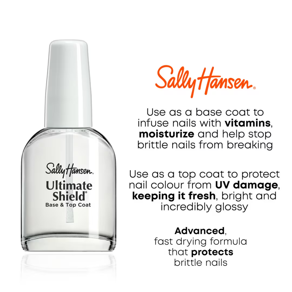 A great manicure starts with strong nails, and that’s where Sally Hansen Ultimate Shield Base & Top Coat comes in. This base coat strengthens and protects nails, helping to prevent breaks and chips. I always use it as the first step in my routine to ensure my nails are ready for color and stay in great shape. It also helps to smooth out any imperfections on the nail surface, creating the perfect canvas for polish.