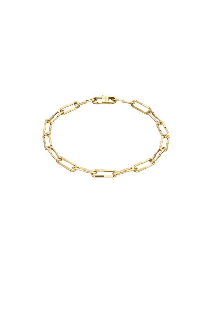I also added the Gucci Link to Love Bracelet in Yellow Gold. This bracelet is delicate and refined, perfectly complementing the larger Rabanne bracelet while adding a touch of Gucci’s signature elegance. Together, these pieces create a layered effect that enhances the dress without overshadowing it.